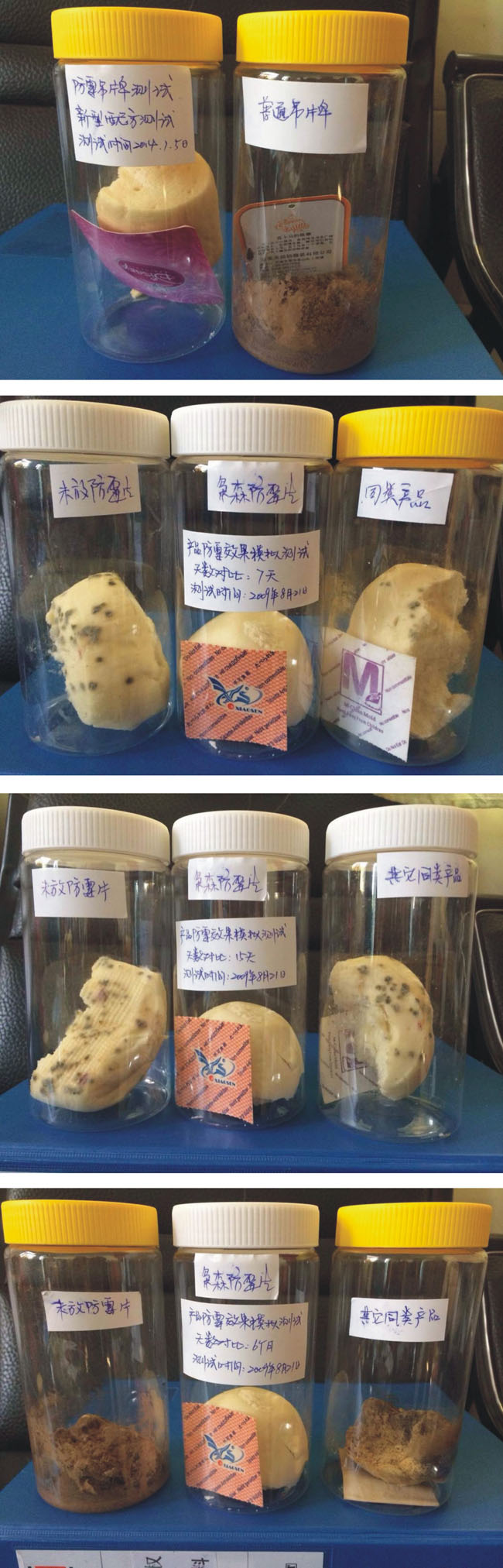 防霉模擬測式法。在隨大貨抽檢撕下一片防霉片放入透明的玻璃杯中,再在杯中放入半個饅頭,同時準備兩個杯,一個放防霉片,一個不放防霉片,同時蓋好兩個杯子的杯蓋。在把杯蓋上寫好作實驗的時間,這樣兩個杯子的模擬測試就作成了。28天內你可以隨時觀察兩個杯子的發霉情況,如果放防霉片的杯子在3到6個月沒啥變化,那么這個品牌的防霉片就絕對沒有問題了!